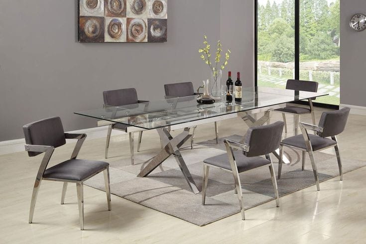 BASE DE MESA COMEDOR HECHO DE ACERO INOXIDABLE Y TABLERO DE VIDRIO TRASLUCIDO SOBREPUESTO